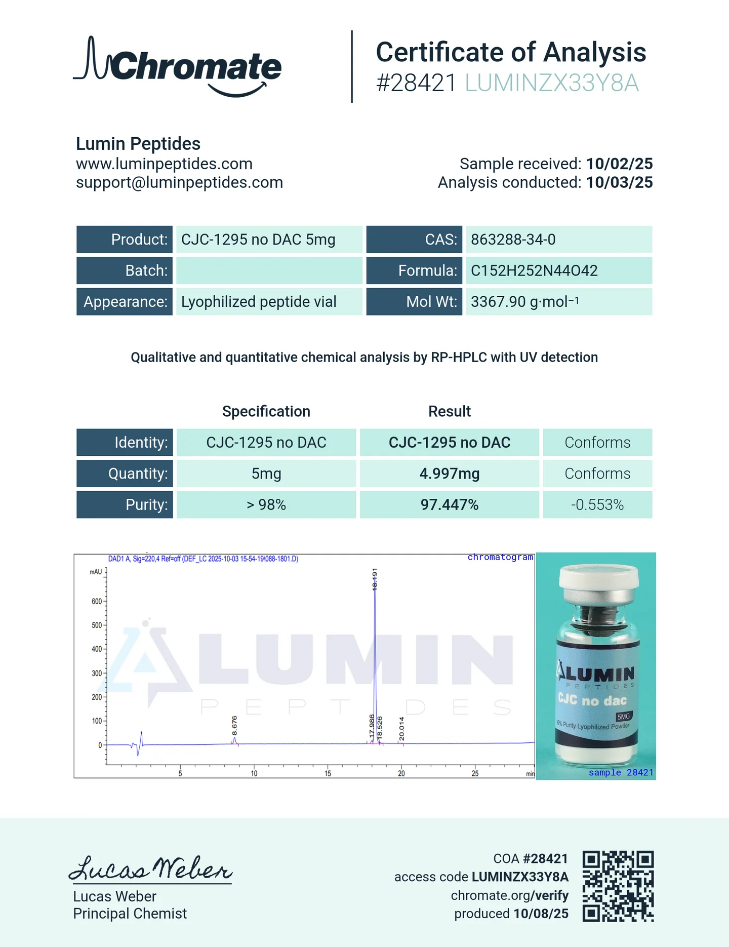 99% Pure Lyophilized Powder in 3ml vial (NOT A LIQUID) – If Reconstitution is desired, please purchase our Reconstitution Solution, HERE