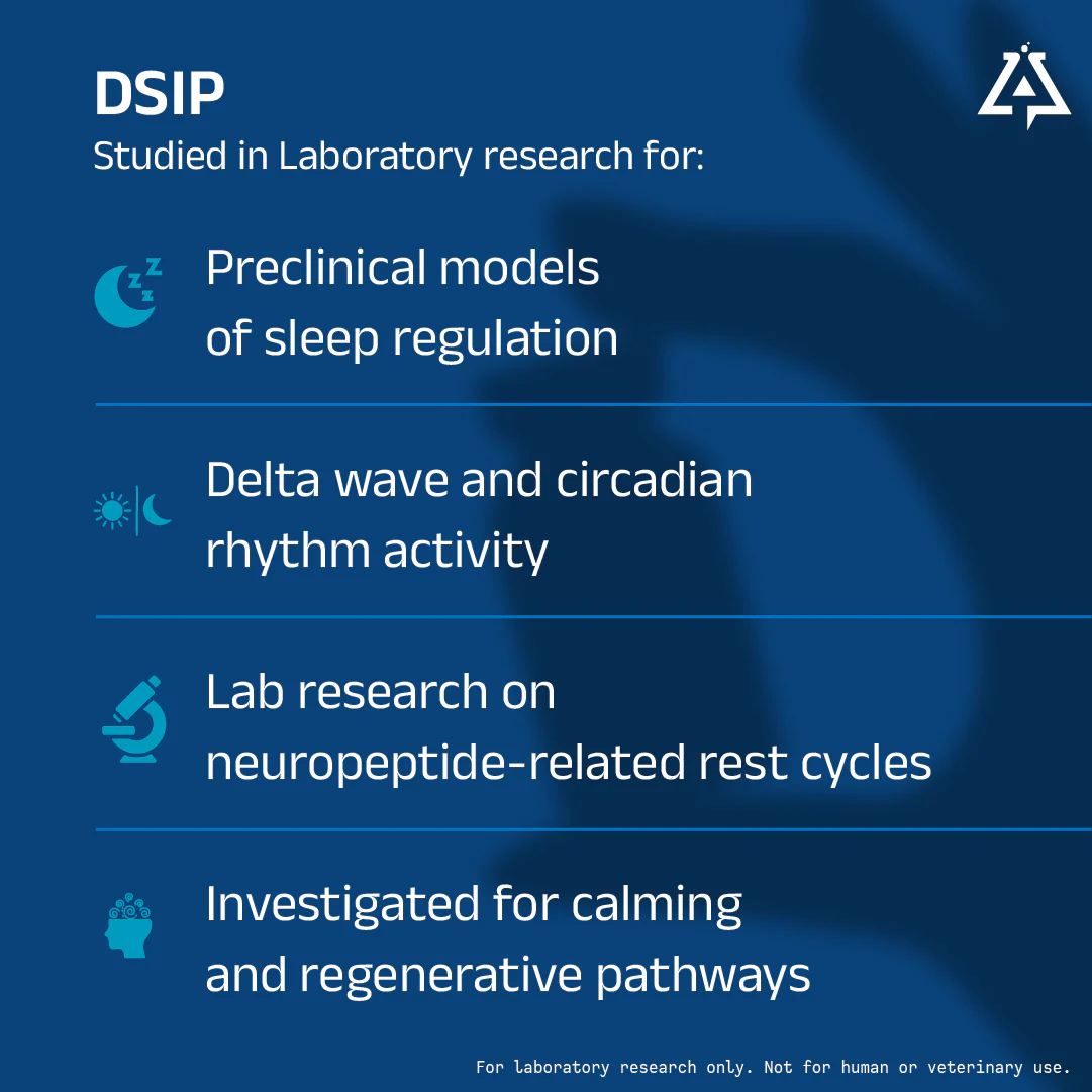 Delta sleep-inducing peptide (DSIP) is a short peptide of natural origin. It gains its name from its ability to cause sleep in rabbits and from the fact that it was first isolated in 1977 from the brains of rats during slow-wave sleep. The peptide, however, has a number of physiologic and endocrine roles that are slowly being uncovered as it gains interest among researchers. Right now, it is known that DSIP can alter corticotropin levels, inhibit somatostatin secretion, limit stress, normalize blood pressure, alter sleep patterns, and alter pain perception. It may also have future applications in cancer treatment, depression, and the prevention of free radical damage.